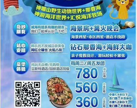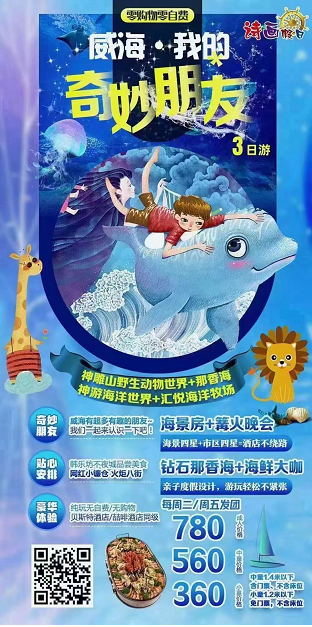 • 济宁出发到威海旅游的线路威海我的奇妙朋友三日游识别图片二维码查看详细行程  HBWH75