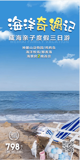 出发到威海一地威海度假亲子三日游旅游识别图片二维码查看详细行程