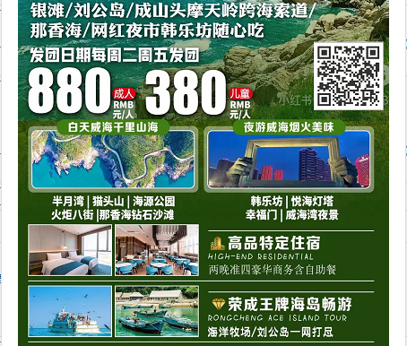 • 济宁周边出发到威海旅游的线路只此威海私人订制三日游识别图片二维码查看详细行程  HBWH85